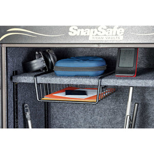 Utilize the convenient Magnesium Hanging Basket to effortlessly add storage capacity for legal-sized documents. This innovative basket conveniently attaches to ½-inch to 1-inch shelves in your safe, closet or cabinet, supporting a maximum weight of 40 pounds.