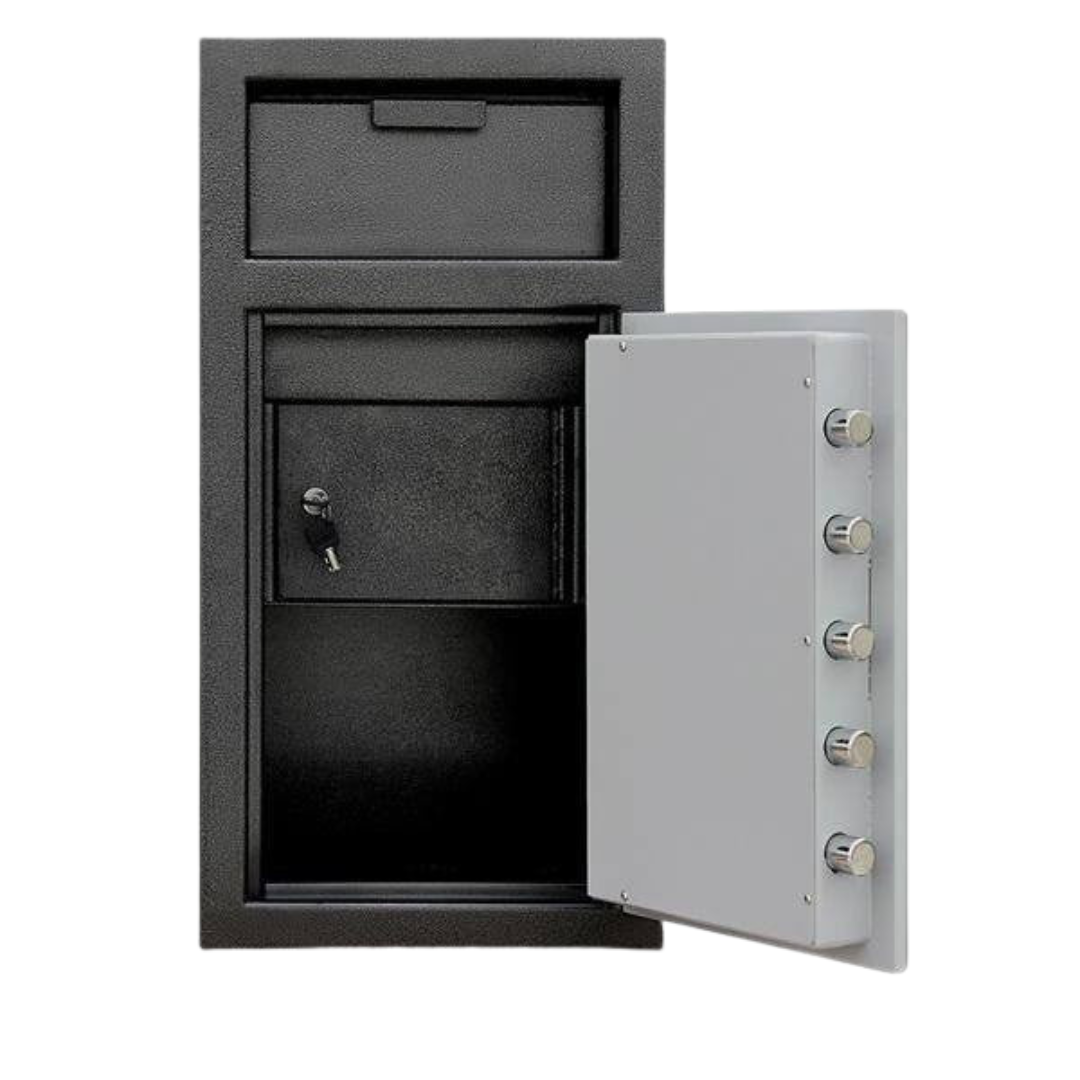 The Mesa MFL2714CILK Series Depository Safes deliver superior security for businesses that handle regular cash transactions and deposits. Designed to prevent both external robbery and internal theft, these durable safes provide a secure solution for fast, convenient cash drops while restricting access to the safe's contents. Perfect for retail stores, restaurants, offices, and other cash-handling environments, the MFL2714CILK Depository Safe protects your money, checks, and valuables by offering secure storage for daily deposits until they can be transported to the bank, giving you peace of mind and enhanced protection.