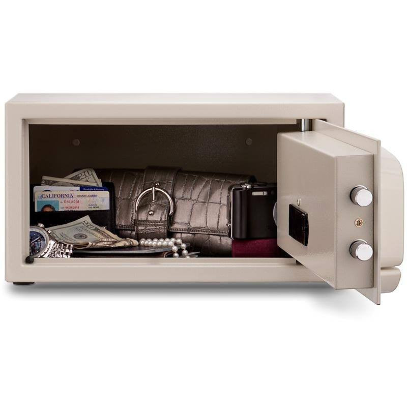Perfect for securing laptops, jewelry, passports, cameras, and personal documents, the Mesa MH101E is equipped with an advanced electronic keypad lock powered by batteries for quick, hassle-free access. A user-friendly LED display keeps users informed, while the magnetic card swipe function accepts most credit cards and ID cards, ideal for hotels and shared spaces.