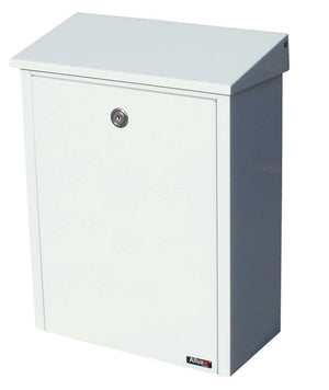The Qualarc ALX-200 Allux Series Mailbox is a spacious, wall-mount mailbox with a top-loading design and secure locking mechanism. Its 9-7/8" x 1-1/2" slot is concealed by a top lid, and it features sturdy steel construction with a protective powder coat finish.