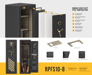 The RPNB RPFS10-B 10-Gun Fireproof Biometric Gun Safe (Black) is a premium solution for firearm owners seeking heavy-duty fire protection, advanced security, and smart storage organization. Built from solid anti-theft steel and weighing over 180 pounds, this durable safe is designed to safeguard your firearms and valuables from both theft and fire-related threats.