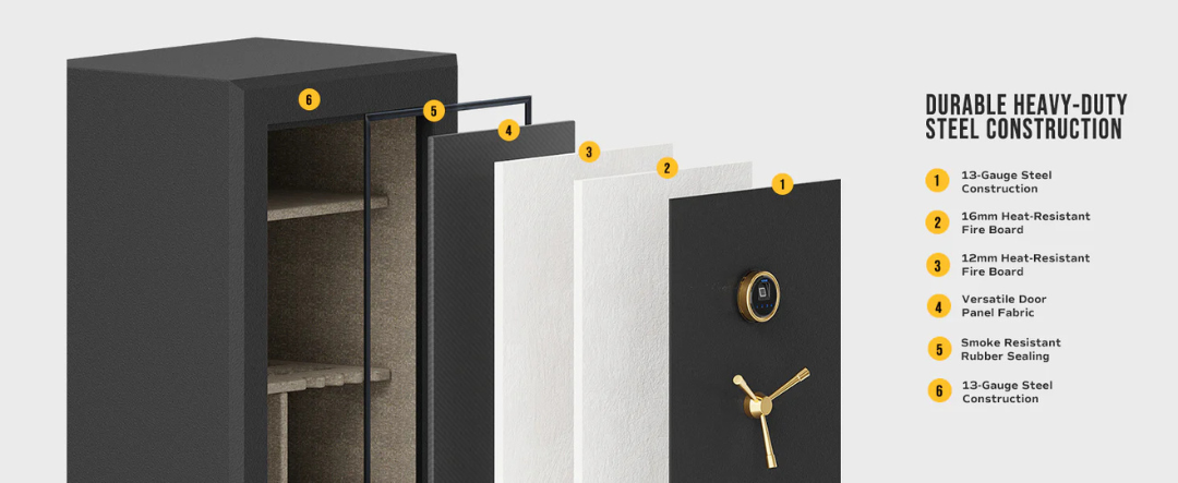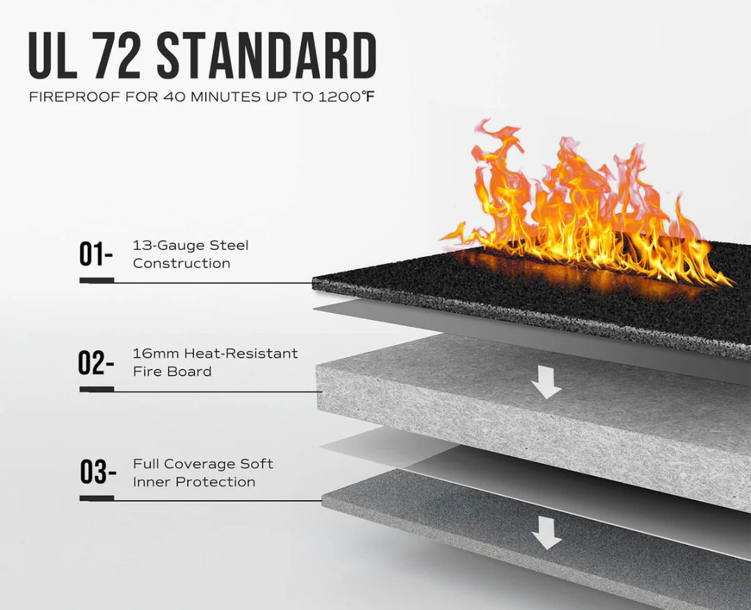 Engineered with 16mm heat-resistant fireboards, the RPFS14-B meets UL 72 fire resistance standards, providing 40 minutes of fire protection at up to 1200 degrees F. This ensures your rifles, handguns, and valuables stay safe from heat damage during fire emergencies.