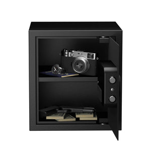 Crafted with a reinforced solid steel wall structure, the safe is built to resist tampering and unauthorized access. Dual live-locking bolts add another layer of protection, keeping your belongings safe from forced entry.