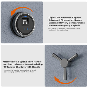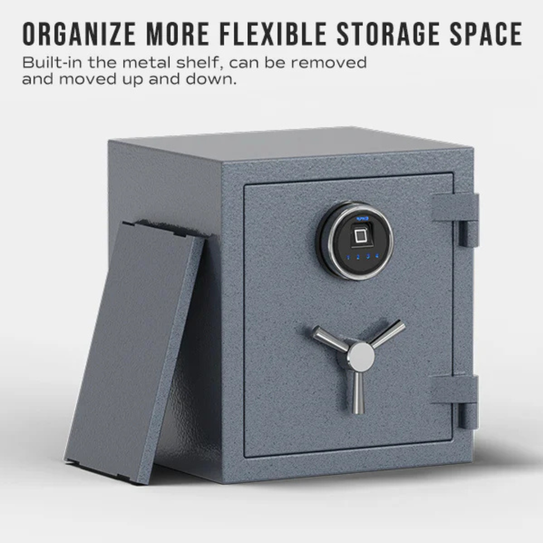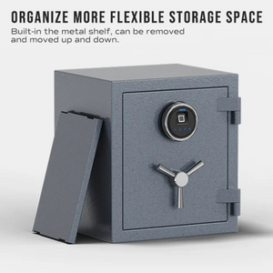 Enhanced security features include a built-in tamper alarm that activates a 1-minute alert with sound if the safe is violently shaken, temporarily disabling both the keypad and fingerprint sensor to block unauthorized access.