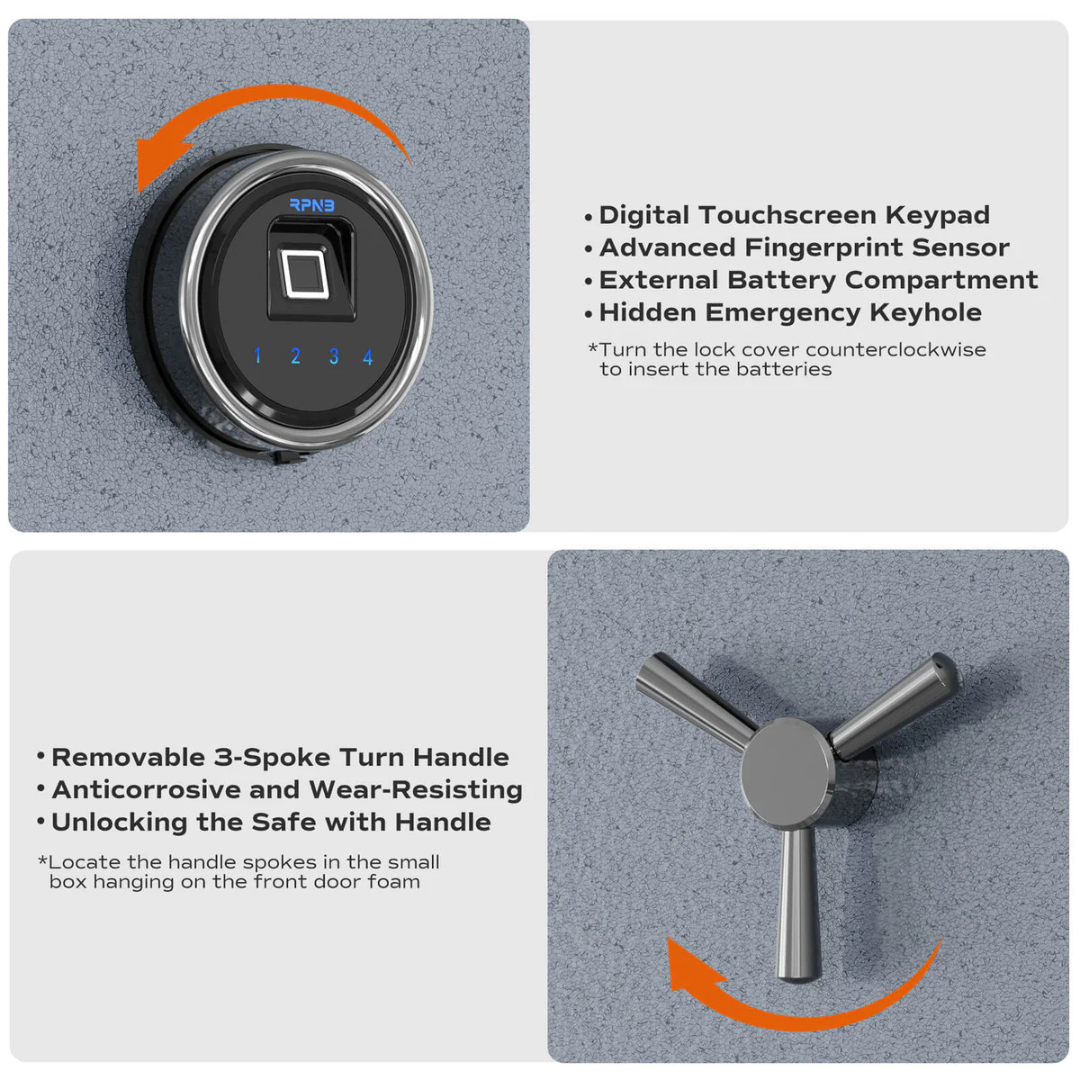 The RPNB RPFS40G Grey Deluxe Biometric Fireproof Safe – Fingerprint Safe with Touchscreen Keypad & UL Fire Protection