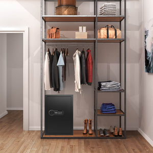 Installation is simple with four pre-drilled mounting holes and included hardware, allowing you to anchor the safe to a closet, floor, cabinet, or wall for enhanced stability and theft prevention. With external dimensions of 19.69" H x 13.78" W x 12.99" D and a weight of 37.48 lbs, this safe provides generous internal storage space while maintaining a compact footprint.