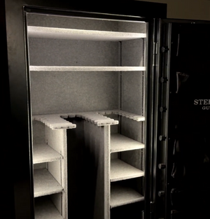 - Maximum capacity of 45 long guns (15/15/15 configuration); average usable capacity is 33–39 long guns