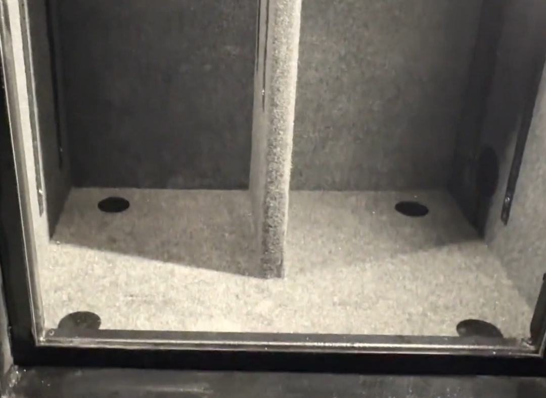 - (4) Pre-drilled 7/16” diameter anchor holes that have been reinforced with 1/4″ steel plate for more security when the safe is bolted down