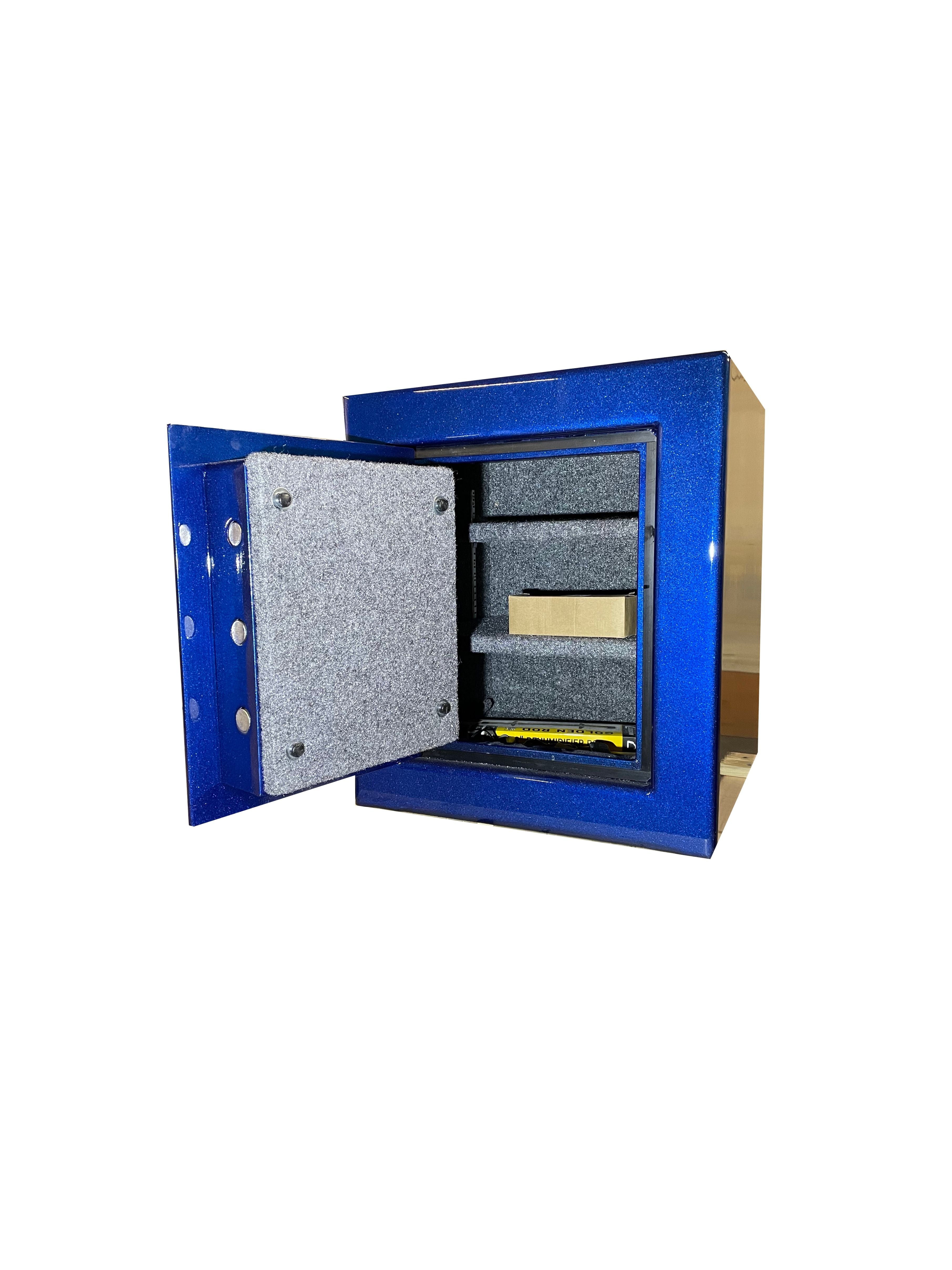 Exterior Finish: Choose from a variety of gloss paint finishes, meticulously hand-painted and adorned with hand-applied logos available in chrome, gold, or black. The safe features a single drop handle, adding a stylish finishing touch.