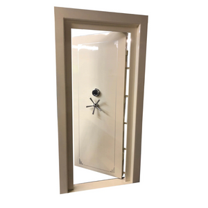 The Sun Welding SW8035 Inswing Vault Door includes a standard Sargent & Greenleaf (S&G) mechanical dial lock or SecuRam electronic lock at no extra charge. Additional lock options are available upon request. The default configuration features a left-hand hinge, but the right-hand hinge is offered at no additional cost. The inward swing is especially beneficial for storm shelter applications, allowing the door to open inward in case debris blocks the exterior. An internal safety release ensures you can exit the room from the inside at any time.