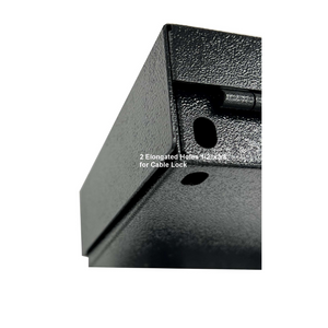 - Elongated holes (1/2" H x 3/8" W) on the back allow you to use a padlock or cable or to secure the case to fixed objects in your vehicle or home.