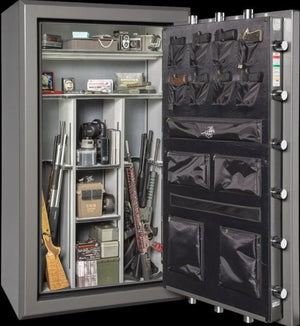 The Winchester Legacy 53 Gun Safe provides unparalleled security and fire protection. Its sturdy 10-gauge steel body and superior fire rating make it the ultimate choice for safeguarding valuables. The reinforced 1/4" thick steel plate on its door adds an extra layer of protection against potential intruders. Designed with an innovative vertical storage system, this safe can hold up to 60 long guns, maximizing its capacity compared to similar models. For top-of-the-line protection and storage, the Legacy 53 Gun Safe is the clear top choice.