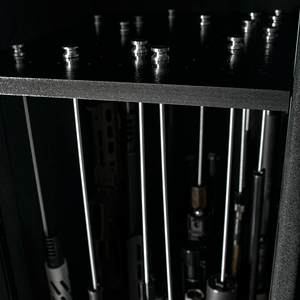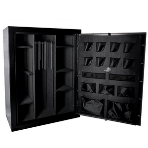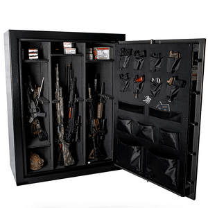 The Winchester Ranger 42 Two Tone Gun Safe, released in 2023, offers excellent fire and burglar protection for your firearms, paperwork, and valuables. With ample space for up to 65 long guns and additional items on the top, as well as a door organizer for quick access to pistols and other belongings, this safe is designed to meet all your storage needs. Its proven 60-minute fire rating, tested at temperatures up to 1400 degrees F, provides superior protection for your guns, valuables, and important documents. The Palusol heat-expanding door seal, which expands to six times its size when exposed to heat, creates a barrier against smoke and heat. The safe's fire protection features UL-rated fireboard in the ceiling, walls, and door, as well as external solid strap hinges that provide full protection compared to internal hinges with weaker points. The composite steel door also has an additional layer of UL-rated fireboard protection behind the door organizer.