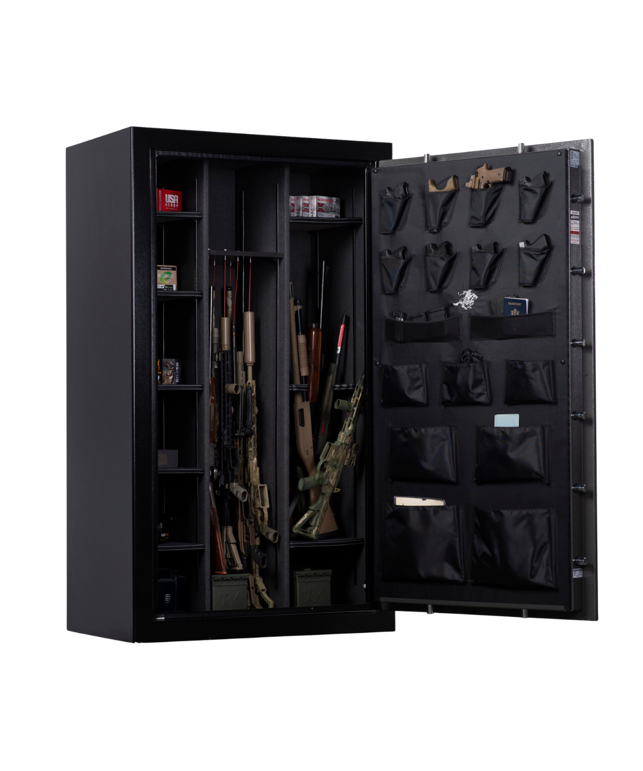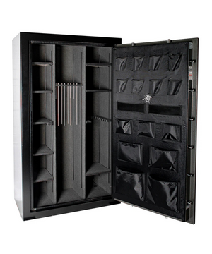 The Winchester Ranger 44 Tall & Wide Two Tone Gun Safe, introduced in 2023, is designed for serious gun owners who need maximum storage capacity and top-tier protection. With space to store up to 55 long guns, this extra-wide gun safe also includes additional room for handguns, gear, documents, and valuables. A premium door organizer comes pre-installed, offering convenient access to pistols and essential items, all neatly stored in zippered compartments for better organization.